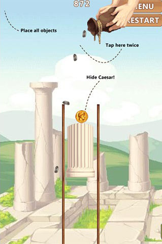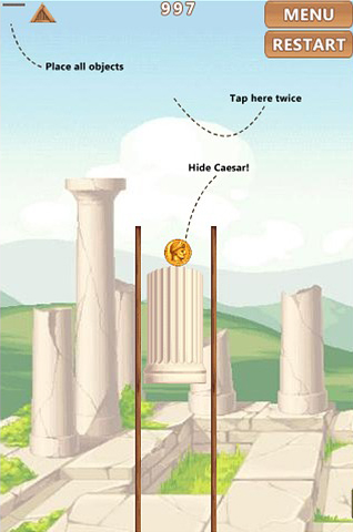 Tere tulemast uus lõbus HTML 5 mängu Peida Caesar! See on füüsika-põhise puzzle mäng koos klassikalise ladina teema. Siin oma põhiülesandeks on mitmesuguseid esemeid tilk võrdsed, nii, et nad tulevad puhata, mis hõlmab Rooma mündi. Kui kõik kivid touch mündi või igal ajal on lubatud põrandale kukkuda, kaotada ja tuleb uuesti alustada. Kasuta hiirt, et valida ja paigutada objekte. Lõbutseda, lõõgastuda Ceasar peita. Saab mängida seda kohe mobiilis tasuta!