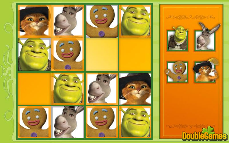 Võimalus mängida oma lemmik kangelased kuulsa animafilmi Shrek 4 Forever Pärast uue puzzle mäng Shrek 4 Sudoku! Testi oma planeerimise oskusi ja loogikat ja püüda lahendada hämmastav mõistatusi koos pilte Shrek, eesli-, kassi-ja kooki! Vali režiim ja proovida lohistada tähtedega gameboard! Lae alla tasuta ja mängida võrgus praegu sõltuvust puzzle mäng Shrek 4 Sudoku! Vaata uue Shrek 4 Forever Pärast ning nautida lõbusaid tähemärki mäng! Õnn kaasa!