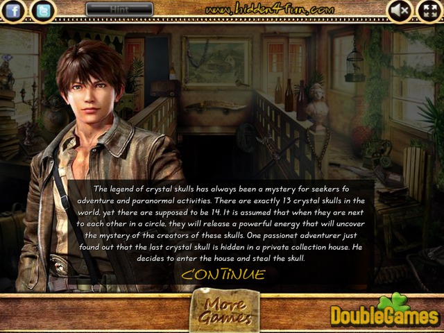 Crystal Skulls on midagi, mida inimesed öelda legende, sest nad on alati olnud mõistatus. Need legendid öelda therer on kolmteist pealuud kogu maailmas, kuid mõned usuvad teine. Mis veelgi nii erilist need pealuud? Liitu meie kangelane ja teda aidata leida uusi põnevaid tasuta online peidetud objekti mäng The Last Crystal Skull. Koos sa lähed, et uurida salapärane kohtades, majad ja otsida 14. kolju. Loodan, et sa hakkad meeldib mängida tasuta online flash mängu veebilehel. Edu!